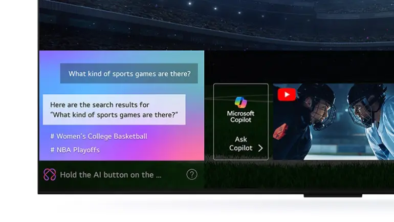 ![]() AI SearchΖήτησε απο την τηλεόρασή σου ό,τι χρειάζεσαι. Το ενσωματωμένο AI αναγνωρίζει τη φωνή σου και σου προσφέρει εξατομικευμένες προτάσεις. Επιπλέον, μπορείς να λάβεις περισσότερα αποτελέσματα και λύσεις με τη βοήθεια του Microsoft Copilot. *Απαιτείται σύνδεση στο διαδίκτυο.