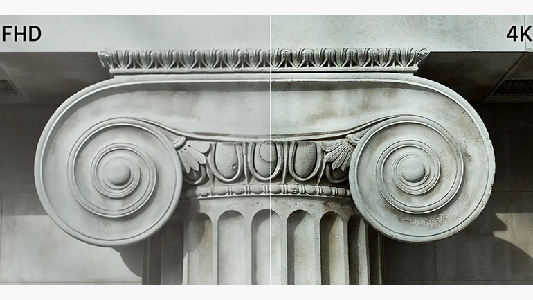 ![]() Εκπληκτική ανάλυση οθόνης. Ανάλυση 4KΔες ακόμη και την πιο μικρή λεπτομέρεια σε κάθε σκηνή. Η ανάλυση 4K UHD διαθέτει 4πλάσια pixel από την κανονική ανάλυση FHD, δημιουργώντας καθαρές, εξαιρετικά ρεαλιστικές εικόνες. |